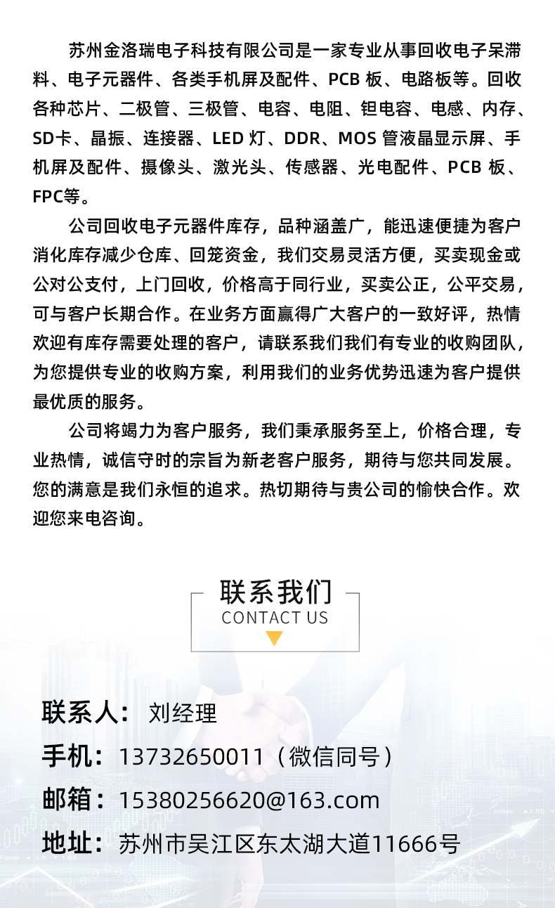 苏 州上门回收二三极管光耦光电器连接件场效应管器模块单机片收购